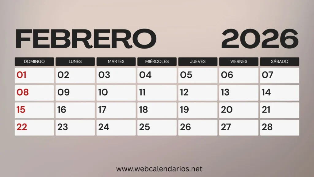 El calendario de febrero 2026 es una herramienta esencial para quienes desean organizar su rutina diaria, planificar eventos importantes o simplemente llevar un control claro de sus actividades. Aunque febrero es conocido por ser un mes corto, su estructura siempre influye en la planificación personal, laboral y académica. En febrero de 2026, muchas personas buscan versiones imprimibles para añadirlas a sus agendas, colocarlas en la oficina o utilizarlas como recordatorio visual en casa. Un calendario para imprimir de febrero 2026 también ayuda a planificar estudios, proyectos semanales, vacaciones cortas y fechas especiales del mes.